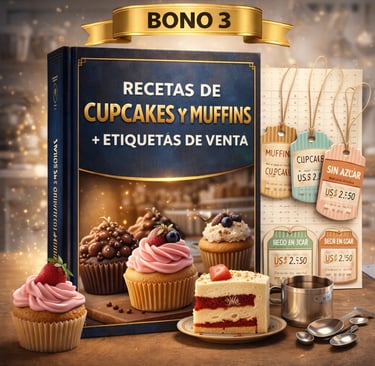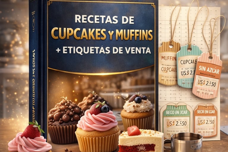 Aprende recetas fáciles de cupcakes y muffins y utiliza etiquetas listas para vender de forma más profesional.