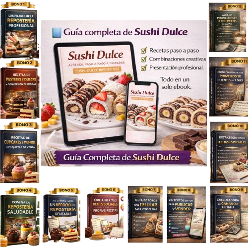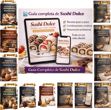 En total, recibirás el producto principal, la Guía Completa de Sushi Dulce, con los 12 bonos